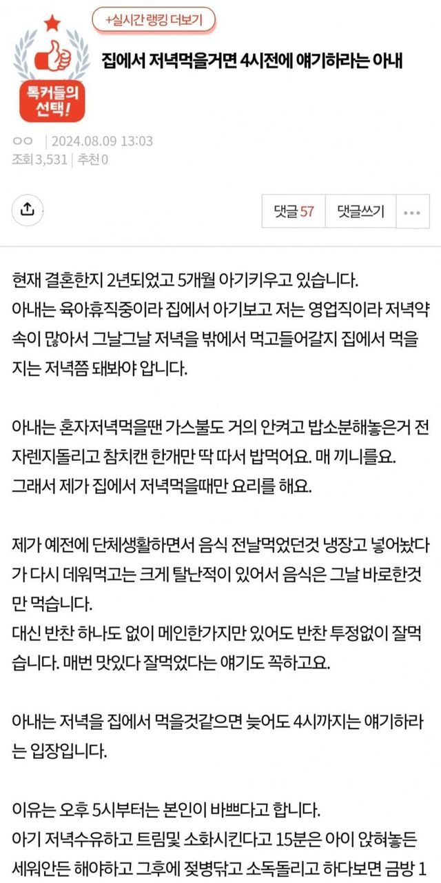 "집에서 저녁먹을거면 4시전에 얘기하라는 아내".jpg